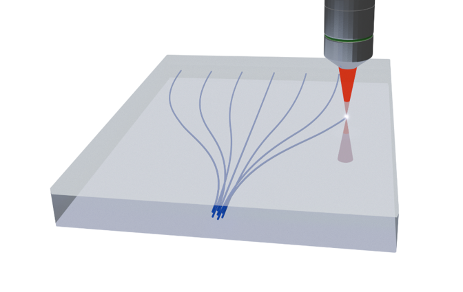 激光直寫3D波導(dǎo)技術(shù)利用自開發(fā)的飛秒激光直寫設(shè)備,通過精確控制激光在玻璃基材上的寫入,實(shí)現(xiàn)高精度的三維波導(dǎo)結(jié)構(gòu)。該技術(shù)具有低損耗、高密度、精細(xì)加工的優(yōu)勢,能夠在微米級別上精確調(diào)控光的傳播路徑,廣泛應(yīng)用于光學(xué)通信、傳感器和光電集成等領(lǐng)域,推動(dòng)光通信器件和模塊的創(chuàng)新與發(fā)展。
